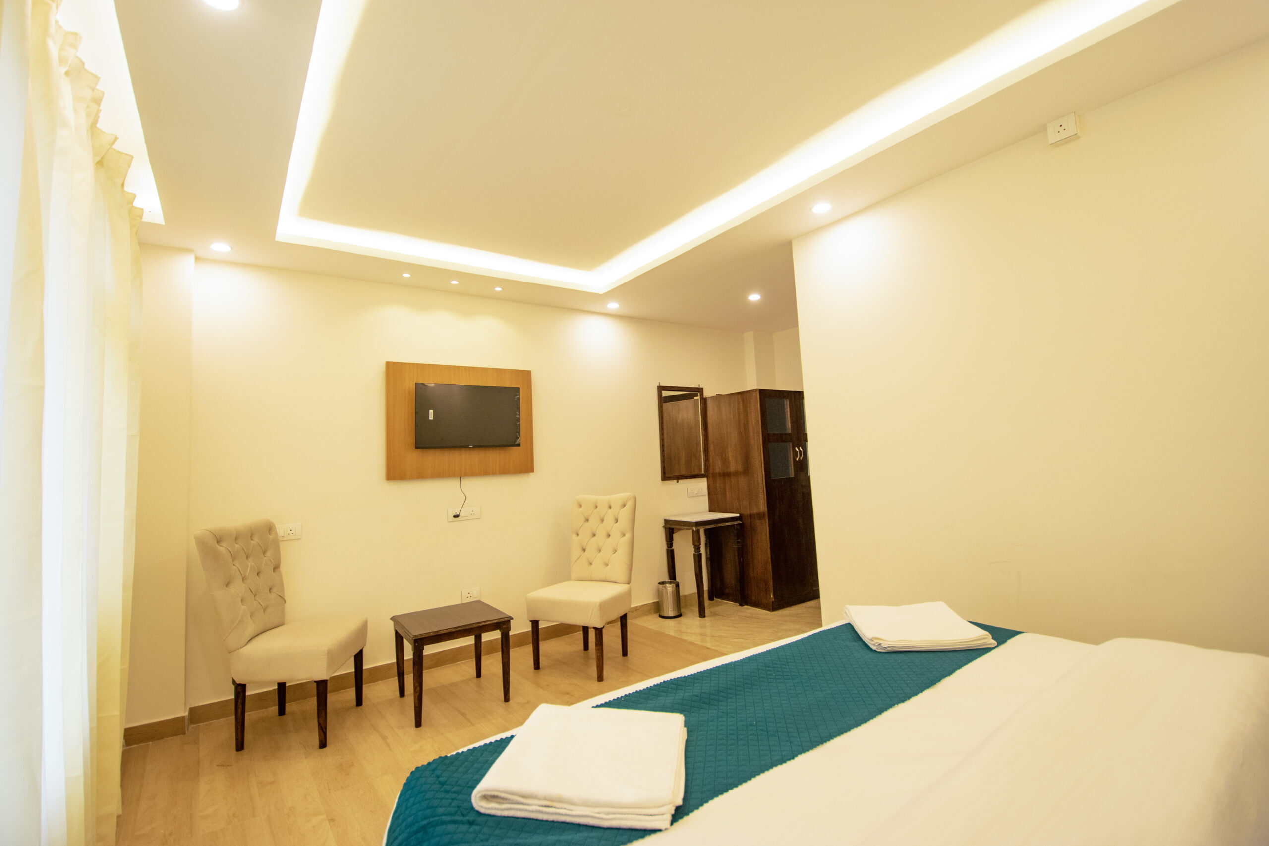 Our Honeymoon Suite provides newlyweds and couples with an unforgettable mountain retreat. The spacious room features a luxurious king-size bed positioned to maximize your panoramic view of the Himalayas.